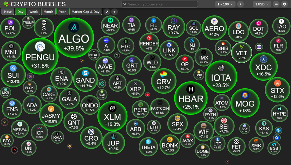 Đợt tăng giá của Bitcoin và Ethereum đã kéo theo toàn bộ thị trường altcoin cùng bật dậy mạnh mẽ. Các đồng tiền trong top 20 đều ghi nhận mức tăng từ 5% đến hơn 20% trong 24 giờ qua. Một số token nổi bật bao gồm: