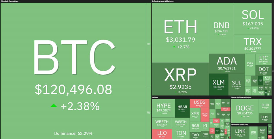 Với việc Bitcoin vượt qua 120.000 USD và thiết lập đỉnh cao mới, thị trường tiền mã hóa đang được kích hoạt trở lại với một tâm lý cực kỳ lạc quan. Ethereum, altcoin, NFT và cả các nền tảng DeFi đều đang được hưởng lợi từ làn sóng tăng trưởng này.
