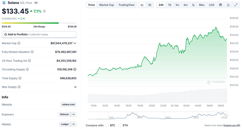 Giá SOL đã tăng 7% trong 24 giờ qua nhờ tin tức được lập ETF futures, cùng với đà phục hồi chung của thị trường tiền mã hóa vào sáng ngày 20/03, sau thông tin Fed giữ nguyên lãi suất.